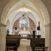 Réception des travaux de l'ensemble de l'église en une tranche unique. Les décors de l'ensemble des intérieurs datent de 1928. A noter, au travers l'imposte ajourée de la porte-double : une croix de consécration (XVè s. ?) ainsi qu'un témoin, laissé apparent, des maçonneries d'origine de l'église du XIè s. [...] Suite ›